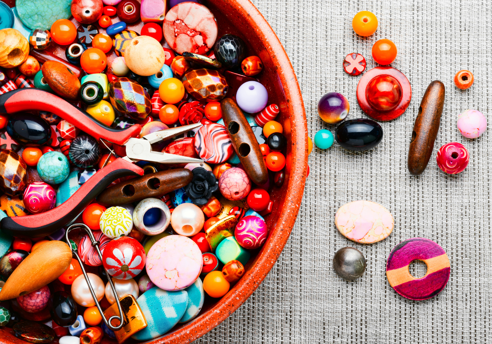 Bastelset aus Peddigrohr - Korb mit Holzperlen