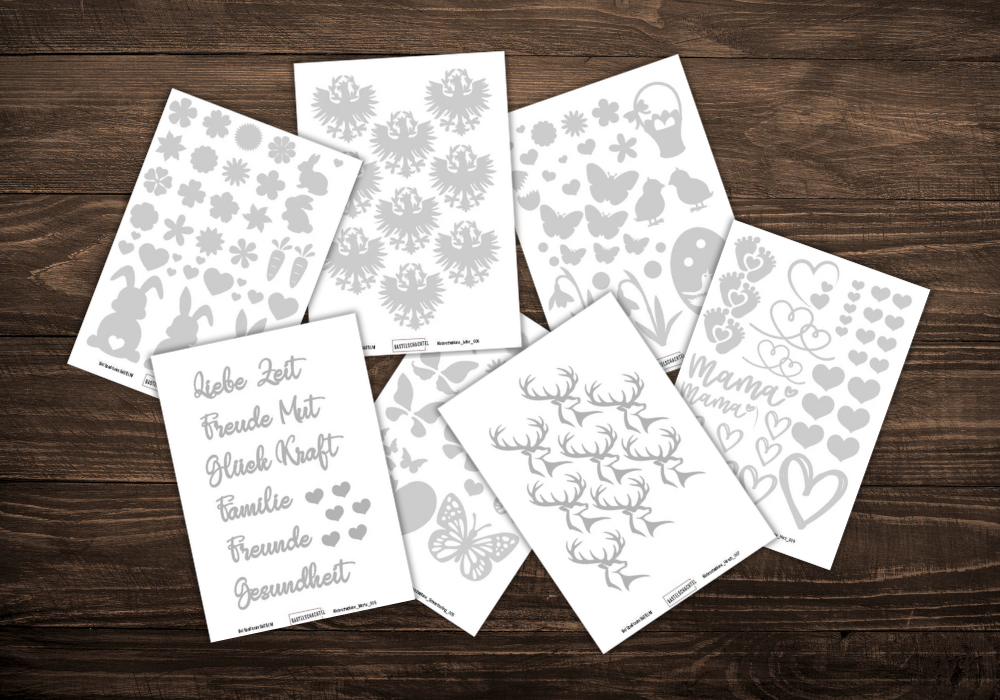 Klebeschablone_002 A6 Frühlingsmotive Schmetterling und Herzen