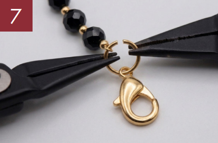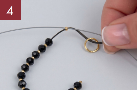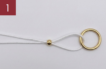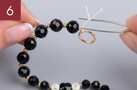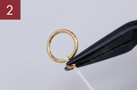 Lege anschließend beide Fadenenden in die Aufreihnadel und fädle eine Quetschperle auf.